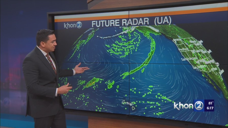 HONOLULU (KHON2) – Water vapor satellite imagery continues to show a broad area of strong subsidence east of Oahu this afternoon.