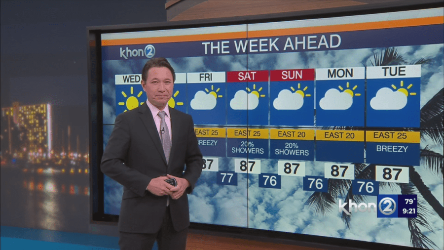 HONOLULU (KHON2) — Trade winds will calm down briefly from Wednesday to Thursday but will pick up again and become breezy from Friday through the weekend. Expect showers mostly in windward and mauka areas, especially overnight and early morning, as moisture moves through.