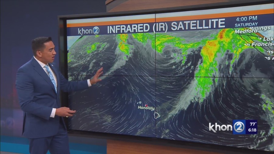 HONOLULU (KHON2) – Latest satellite and surface analysis a weak front has passed through the Big Island with the main cloud band just south of the state.