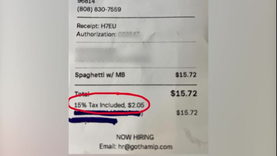 KHON2 asked if this was normal and Victor Lim from the Hawaii Restaurant Association said “I was totally surprised because I never seen someone charge 15% tax here before.”