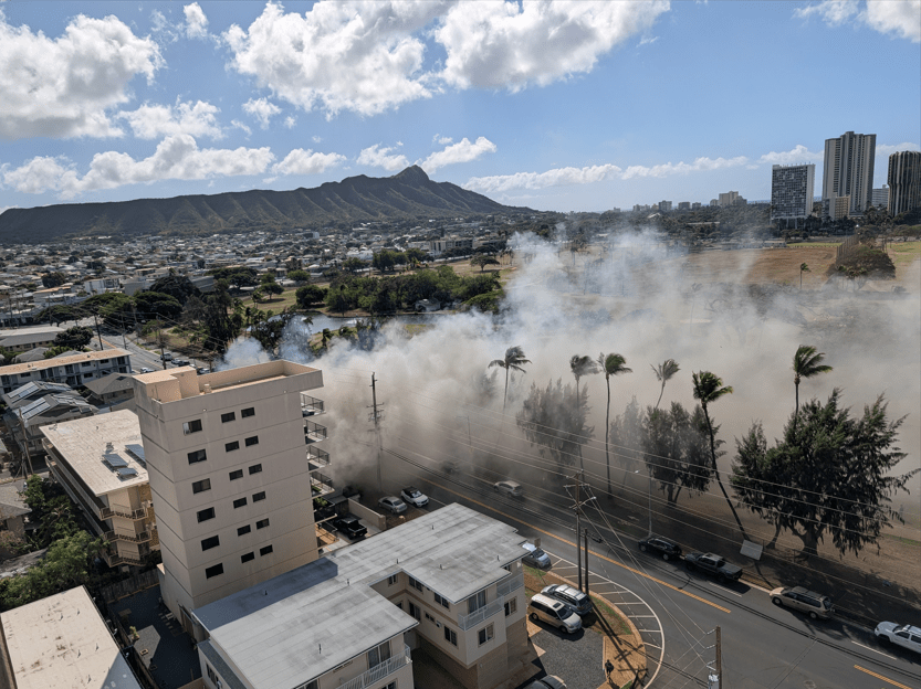 The blaze broke out shortly after 11:30 a.m. on Palani Street.