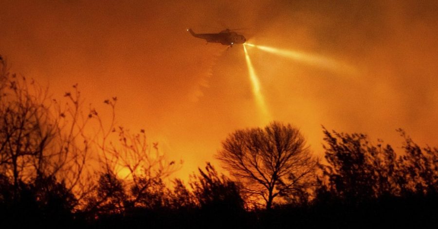 Planes doused homes and hillsides with bright pink fire-retardant chemicals, while crews and fire engines deployed to particularly vulnerable spots with dry brush. Dozens of additional water trucks rolled in to replenish supplies after hydrants ran dry last week when the two largest fires erupted.