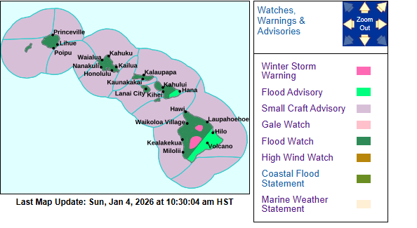 The National Weather Service has posted multiple advisories as a deepening Kona Low north of Kauai shifts southwest of the state through Monday, Jan. 5.