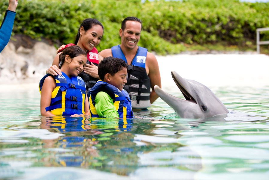 Prefer to say dry? Look into the “Dolphin Aloha” encounter, where guests of all ages can learn about the behaviors and individual personalities of each dolphin on land for $99.99 per person.