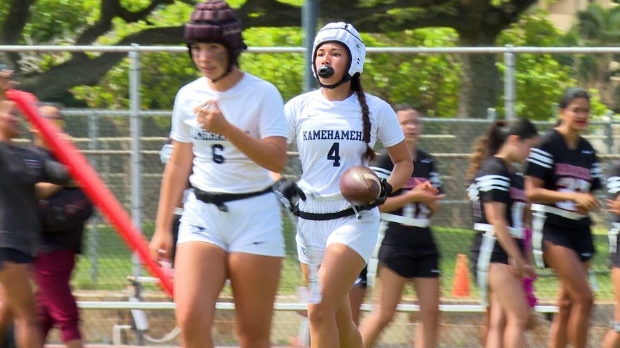 The HHSAA Girls Flag Football Season is in full swing for the ILH teams. Kamehameha and ‘Iolani faced-off on Saturday morning.