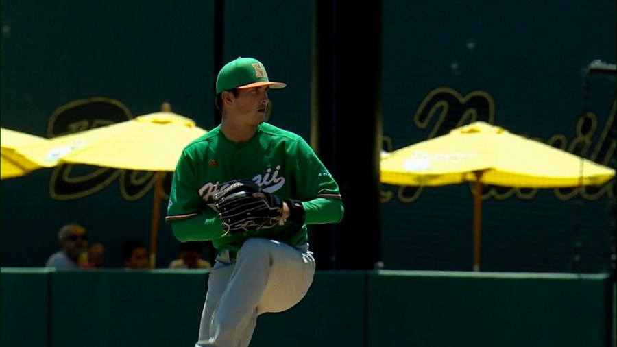Six pitchers combined to toss a shutout for the Rainbow Warriors. Brayden Marx got the start and win with two innings, while Alex Giroux got the save pitching in the ninth. Giroux returned for one inning on Sunday despite throwing 44 pitches on Friday.
