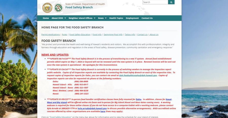 “Nothing has changed with that,” Kuhio Ave Food Hall owner Mike Palmer said. “They’re still doing their due diligence as far as restaurant inspections and making sure that everything is healthy for the public. We’ve had two inspections already this year, it’s just the posting on the website, I think that software, there’s issues with it.”