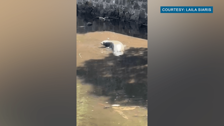 Hawaiian monk seal spotted exploring Nuuanu Stream