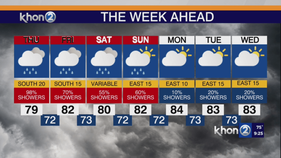 HONOLULU (KHON2) A weakening cold front is moving towards Kauai and Niihau from the northwest, bringing deep, unstable tropical moisture to the islands due to southerly winds. With already saturated soil, additional heavy rainfall could quickly lead to runoff and flash flooding. Therefore, a Flood Watch remains in effect for most of the state, except for the Big Island, which is currently at a lower flood threat level.