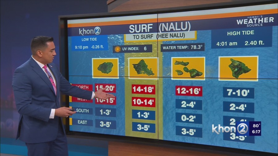 HONOLULU (KHON2) – Moderate to locally breezy trade winds will remain in the forecast through tonight, before gradually diminishing during the first half of the week due to a weak front passing north of the state, weakening the high to our northeast.