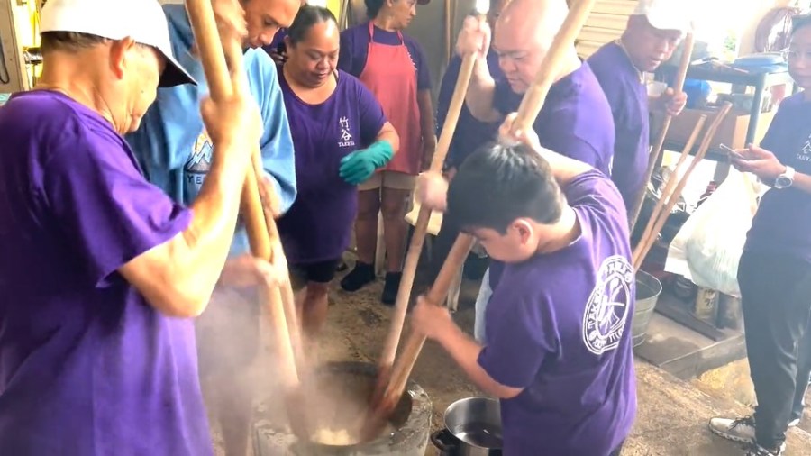 More than 50 members of the Takeya family reunited in Hilo on Sunday, Dec. 29 to help with pounding, steaming rice and making mochi for the New Year.