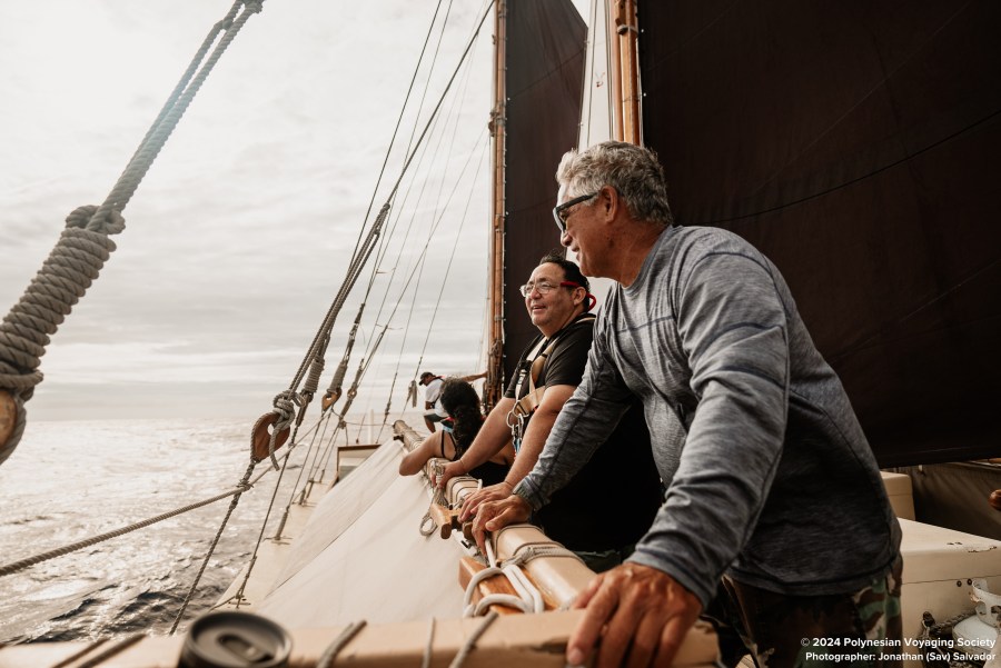 Though the overnight stop in Kahoʻolawe was brief, crews used the time to visit “the island’s sacred navigation platform and shared stories from the last 50 years of work to reclaim, restore and heal the special place.”