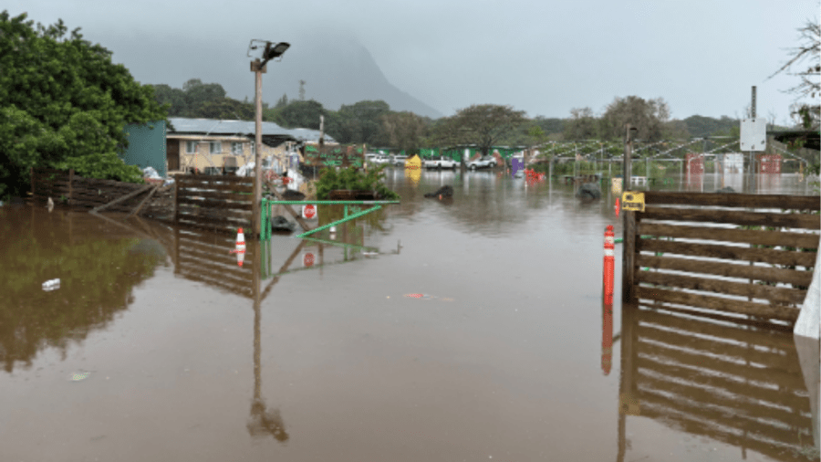 City officials helped evacuate several people from a homeless community facility in Waimanalo after heavy flooding Saturday morning, March 14.