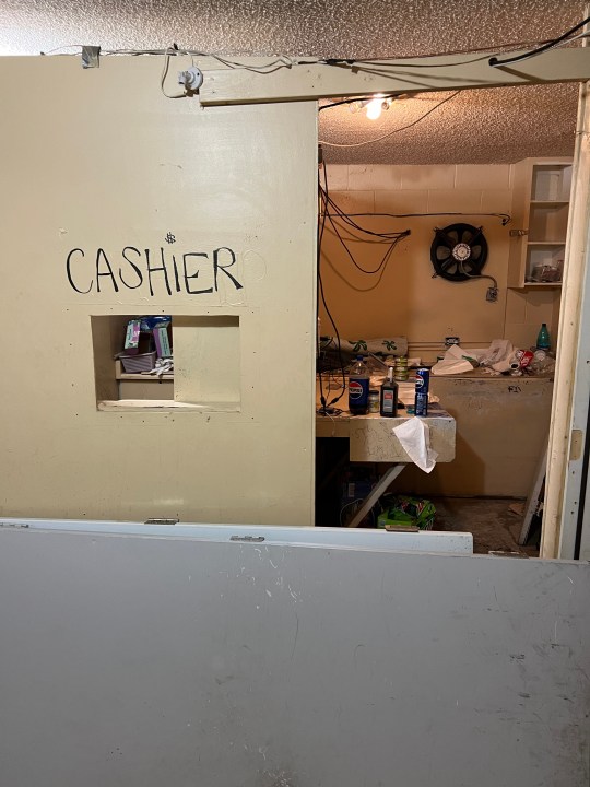 Viewer video showed the interior following the raid with the words “cashier” written on the walls and clean marks on tables where gaming devices once sat.