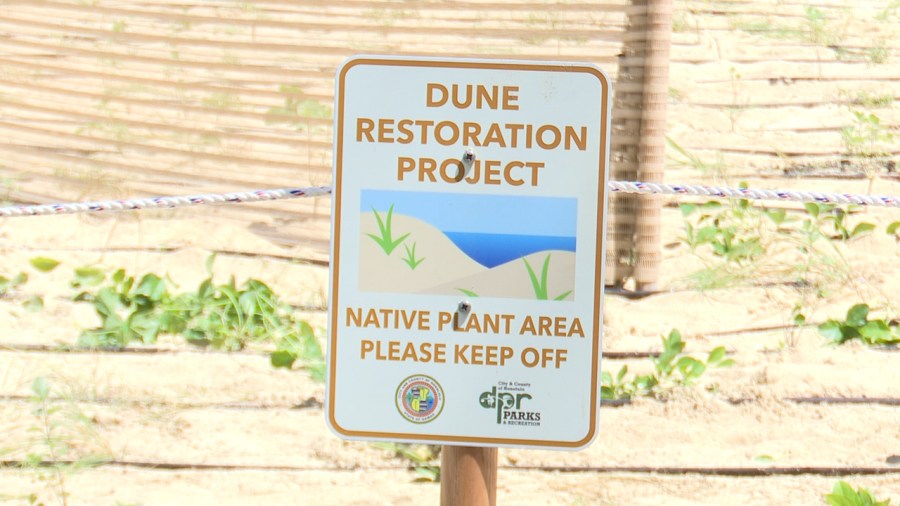 “If we have high waves or a storm and the waves come, they can kind of chew into the dunes a little bit, take some of that sand down from the beach” said Wes Crile, Hawaii Dune Restoration Coordinator. “Those plants can just recover. Then the sand will start to accumulate again, and it’s a cycle that continues.”
