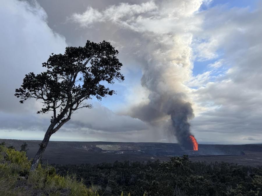 Overnight, USGS reported intermittent glow with occasional spatter in both vents and says strands of volcanic glass also known as Pele’s hair are present through the summit area of the park and nearby communities.