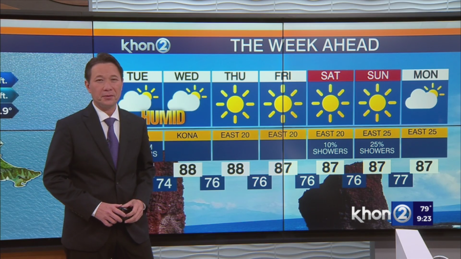 The increased moisture near the weak boundary will lead to light and variable winds statewide and higher chances of rain in the western part of the state over the next day or so. Expect more showers in the Big Island Kona region in the afternoon due to a sea breeze boundary. Lower elevations will feel slightly more humid with temperatures reaching the mid-80s.