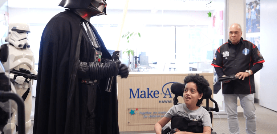 A local boy received good news from Darth Vader on Feb. 18 in the Calvin & Susie Welcome Center at Make-A-Wish Hawaii’s headquarters.