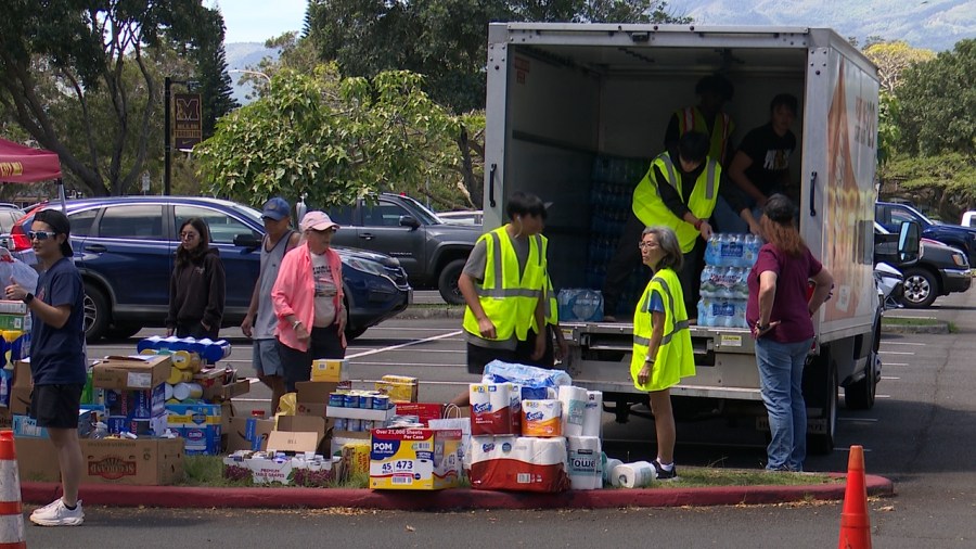 On a day off from work and school for many, members of the Mililani community, including students, faculty and volunteers, spent the day collecting donations to give back to flood victims.