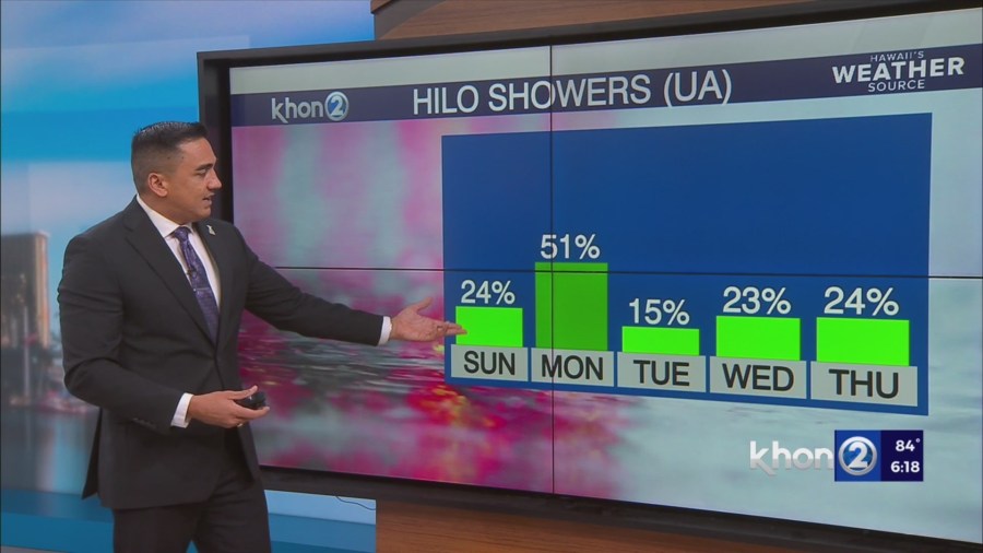 Regardless, expect an increase in showers on windward Big Island midday Monday, spreading the central islands Monday night, then pushing westward to Kauai and Oahu on Tuesday.