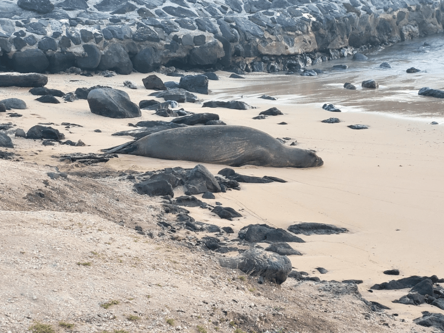 KHON2 received the tip Monday afternoon of what looks to be a Hawaiian Monk Seal lounging at the end of the beach.