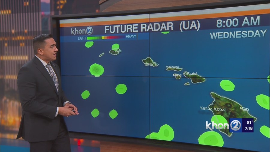 HONOLULU (KHON2) – As the evening progresses expect clouds and showers to diminish along the kona slopes and to increase over the windward and mauka areas.