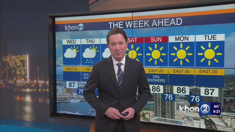This week, a large area of high pressure is the main weather-maker in the Central Pacific. Mid to upper-level high pressure will bring clearer skies and a drier weather pattern. Brief showers may still move into windward areas and higher elevations, especially at night.