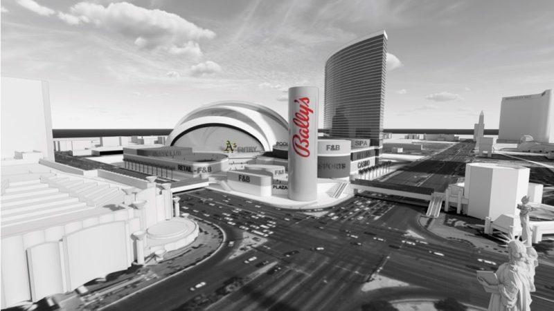 The integrated resort, which is adorned with the Bally’s logo, details the property that would butt up against the new Athletics stadium. A hotel tower would be part of phase one, towering 495 feet over the Las Vegas Strip. It would include 33 guest room levels between the fourth and 36th floors and three suite levels on the 37th, 38th, and 39th floors. A video tower feature would rest at the corner of Las Vegas Boulevard and Tropicana Avenue on the Las Vegas Strip and reach 250 feet in height.