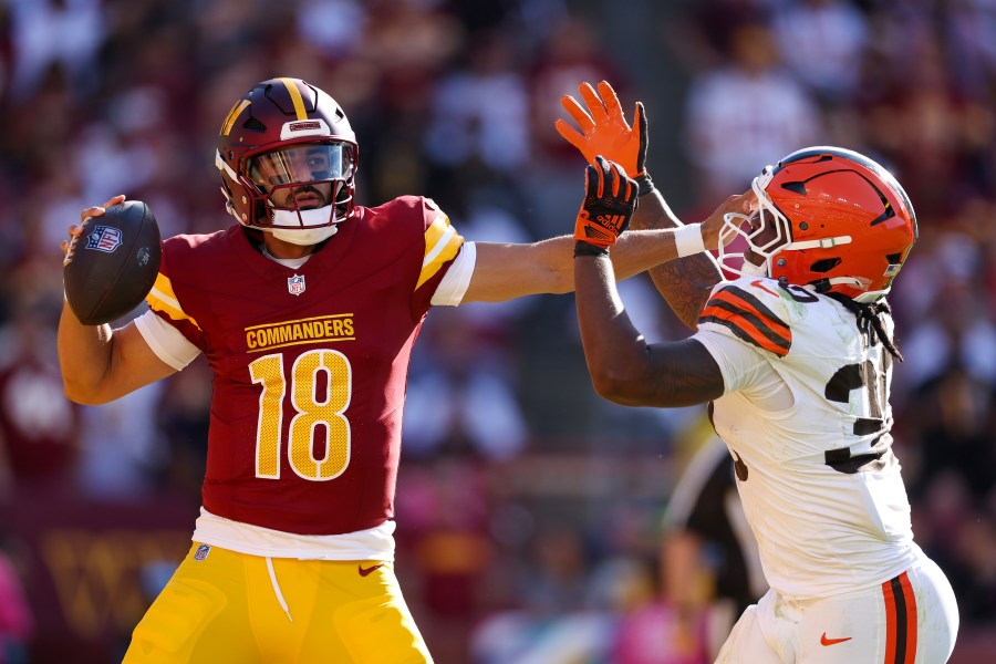 Mariota was activated from injured reserve earlier in the week went 1-for-3 with -2 yards and two rushes for two yards in mop-up duty as the Commanders routed the Cleveland Browns 34-13.