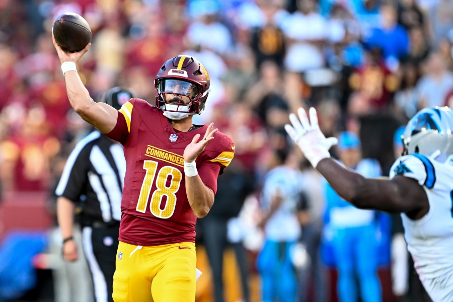 Pressed into early action due to a rib injury to rookie starter Jayden Daniels, Mariota entered in the first quarter and started 0-for-3, but found his comfort zone from there and completed 18 of his 23 passes for 205 yards, two touchdowns and no interceptions.