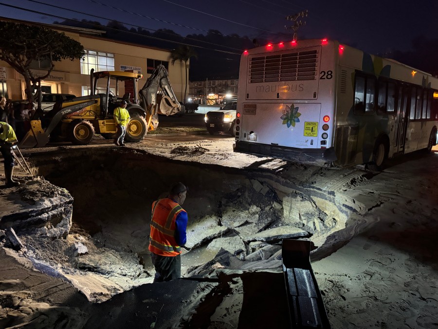 “The hole grew to approximately 15-by-30-feet wide and 5-feet deep by the end of the evening due to water pressure and digging, according to County Department of Water Supply (DWS),” Maui County stated in a news release.