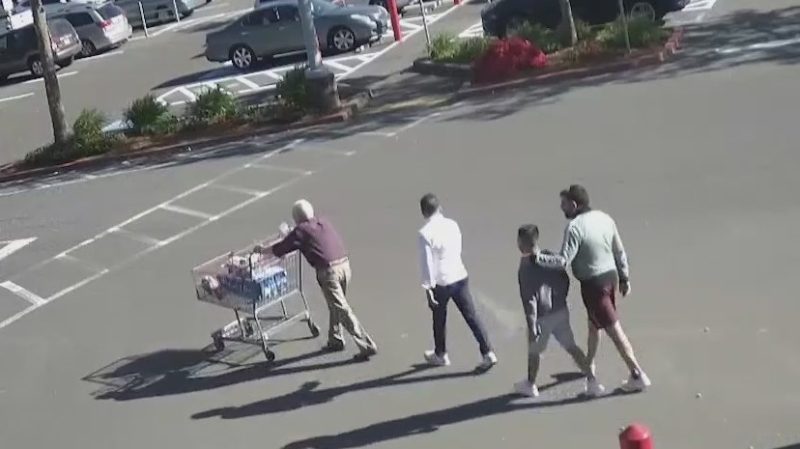 A recent surveillance video shows a 93-year-old man pushing his cart out of a Costco in Portland when three men start trailing behind him, eventually snatching his wallet from his back pocket.