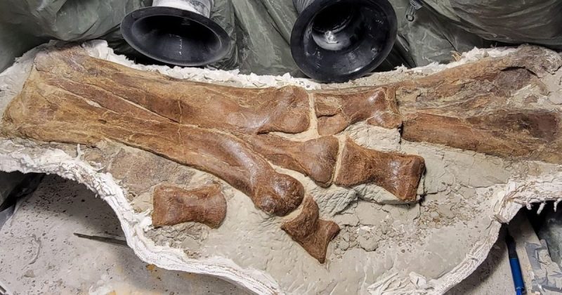Also over the summer, the museum team has begun uncovering the leg and foot bones, revealing how tall the teenage dinosaur was when alive. The bones, which are being carefully preserved and articulated, include the T. rex’s tibia, or shin bone, which was the first one spotted by the children in North Dakota.