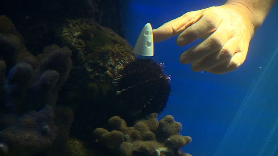 “We have been making hats for the sea urchins to protect them from the sunlight because they don’t really like it and in nature what they will do is pile things on top of them like sand and shells and rocks to get out of the sun,” said Marcus, another Waikiki Elementary student.
