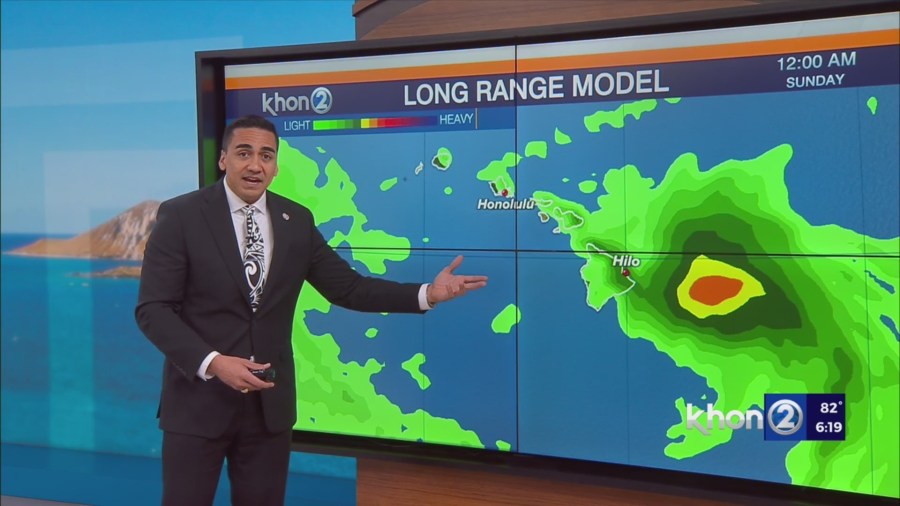 HONOLULU (KHON2) – A weak tropical wave southeast of the islands will help to raise local inversion heights slightly and drag an area of increased precipitable water through the southern portion of the state, allowing for more unstable clouds and a boost in trade wind showers, especially for windward areas of the Big Island and Maui County.