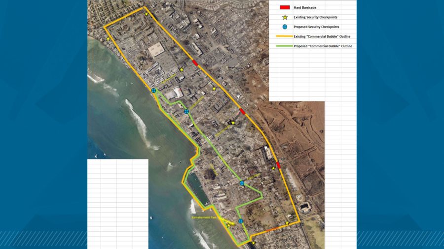 LAHAINA, Hawaii (KHON2) — New security changes will take effect starting 6 a.m. on Dec. 31 in the “commercial bubble” region of the Lahaina Impact Zone.