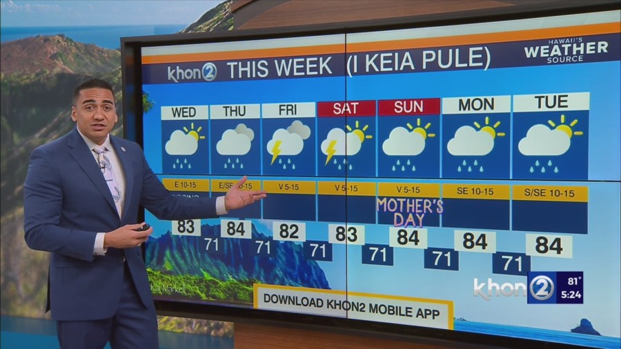 HONOLULU (KHON2) – In the short term, the trade winds will continue to weaken further tonight into Wednesday with sea breezes expected over leeward areas by Wednesday afternoon.