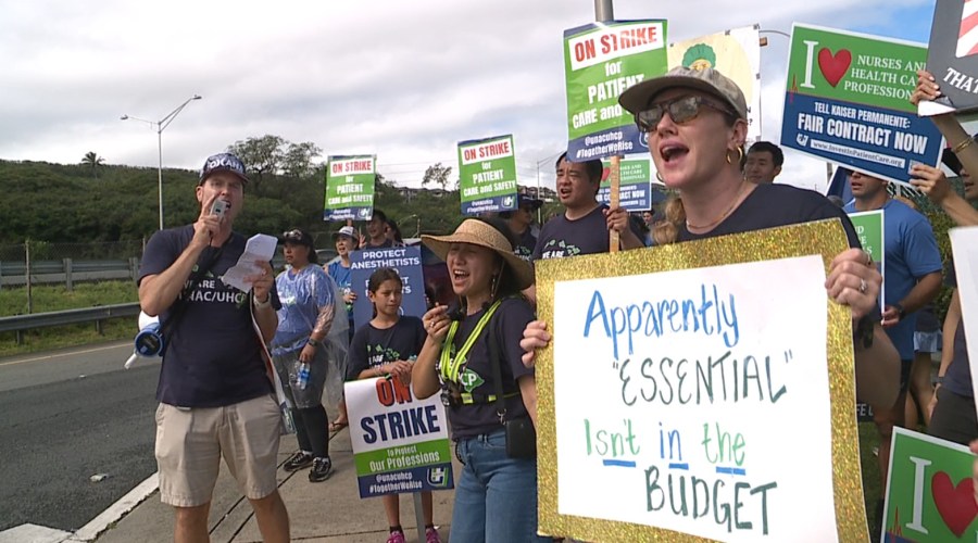 A delegation of workers on strike at Hawaiʻi’s Kaiser Permanente locations were recognized by the Hawaiʻi State Senate on Feb. 5.