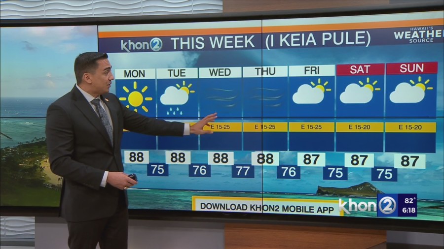 HONOLULU (KHON2) – High pressure system far north of the state will continue to drive trade winds to the region for much of the week.
