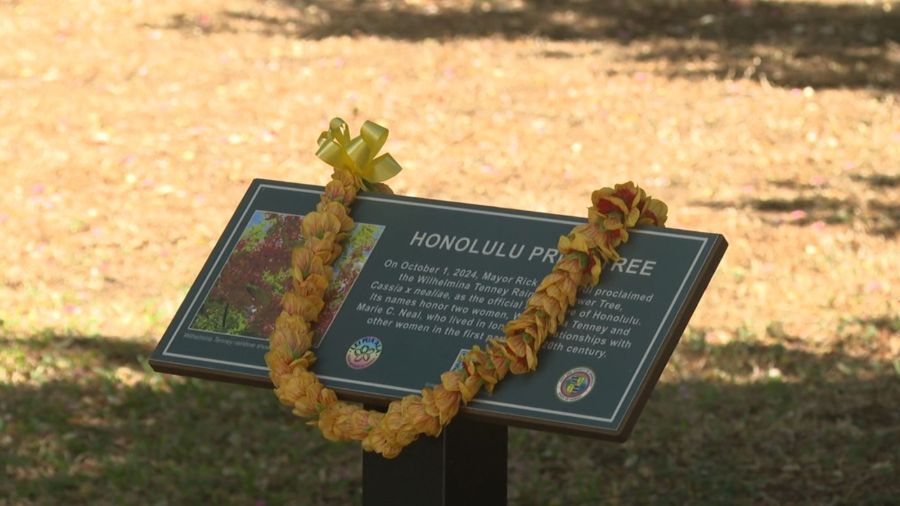 Brown expressed the importance of recognizing these women, stating, “It is very appropriate that not only does the Wilhelmina Tenney shower tree qualify as the tree of the City of Honolulu, but it is also now the official pride tree.”