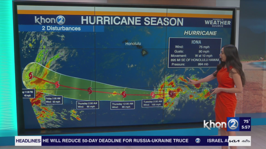 HONOLULU (KHON2) — KHON2’s Weather Source is tracking the first hurricane in the Central Pacific for the 2025 season — Hurricane Iona.