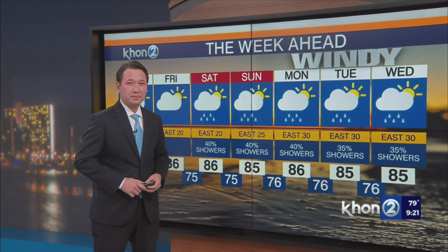 HONOLULU (KHON2) — High cirrus clouds continue to bring overcast conditions at times, lasting into this weekend. Shower chances this weekend will hover around 40% while increasing trades will bring strong wind gusts to the islands early next week.