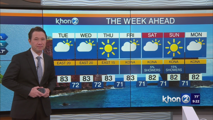 HONOLULU (KHON2) — Expect breezy trade winds Tuesday, with a gradual shift to lighter winds in the coming days. There’s a chance of increased showers early next week, but the overall trend is towards more stable conditions.