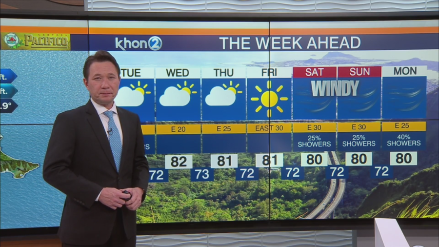 HONOLULU (KHON2) — For the first half of the work week, light to moderate trades will dominate the islands. Dry weather will persist until Wednesday, with occasional overnight and morning showers in windward areas, followed by afternoon showers in interior and leeward regions. By Wednesday night and Thursday, breezy to strong breezy trade winds will return, a shift to more typical trade wind conditions. From Thursday night through early next week, expect strong trade conditions conditions overall, accompanied by an increase in trade wind showers as adisturbance moves across the islands.