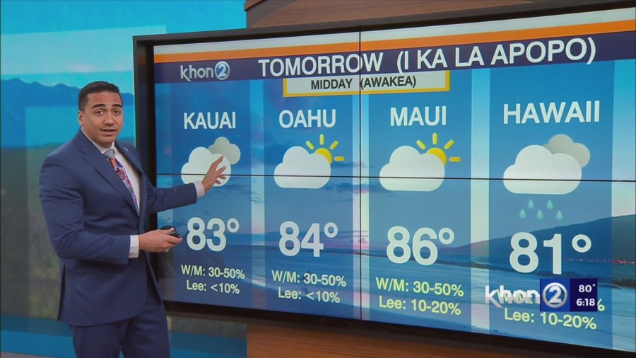 HONOLULU (KHON2) – Broad high pressure far north of the islands is driving moderate to locally breezy trade winds across the state.
