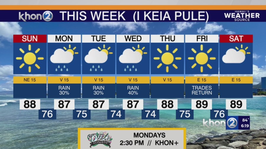 HONOLULU (KHON2) – Light to locally moderate winds will continue through the rest of the weekend.