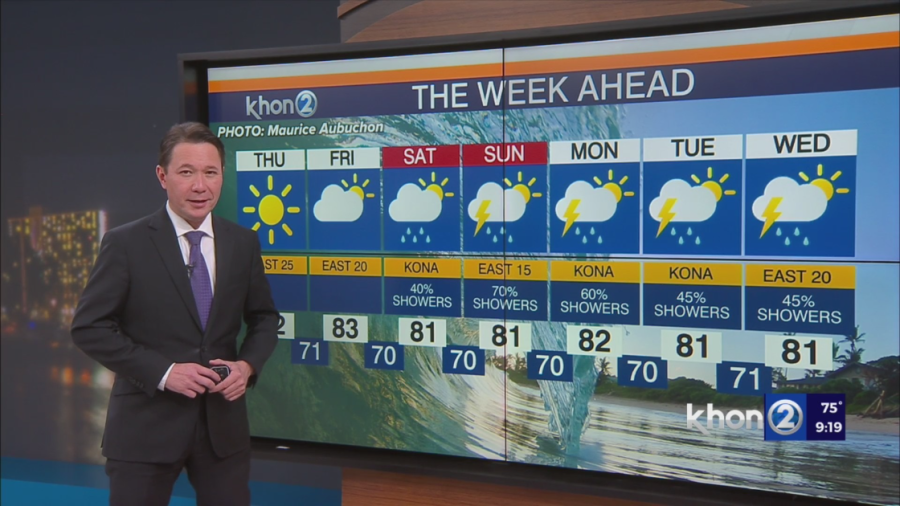 HONOLULU (KHON2) — Strong trade winds will gradually ease starting Thursday. Winds are expected to remain light this weekend. A wet season storm system could bring heavy rain from Sunday through Wednesday. Isolated thunderstorms are expected due to this nearby storm, which should clear the islands Wednesday.