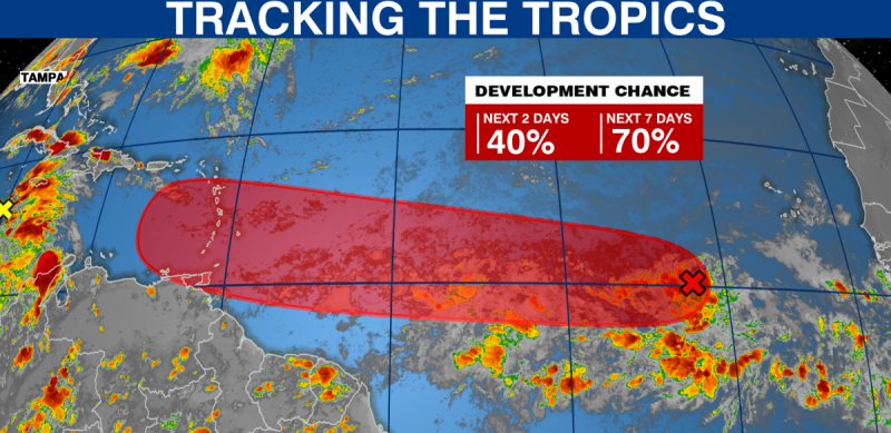TAMPA, Fla. (WFLA) — The National Hurricane Center is tracking two tropical waves in the Atlantic, including one with a 70 percent chance of development.
