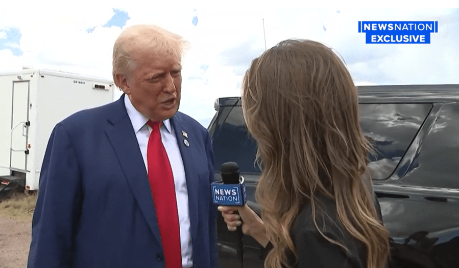 “Can I tell you something? We’re in danger standing here talking,” Trump said during an interview with NewsNation’s Ali Bradley at the U.S. southern border. “So let’s not talk any longer.”