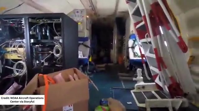 Footage captured by Nick Underwood, an engineer at the National Oceanic and Atmospheric Administration (NOAA) Aircraft Operations Center, and shared by Storyful, shows the crew experiencing violent turbulence during their flight aboard the aircraft known as Miss Piggy.